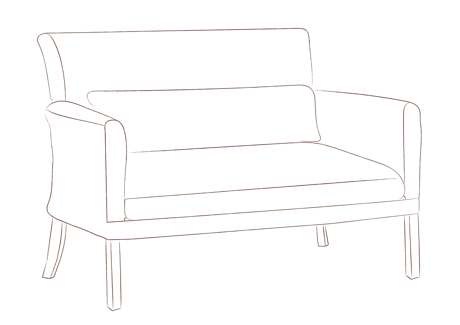 A slim, gently curved arm and slender frame profile with a super comfy pillow-edge seat cushion and feather bolster cushion.