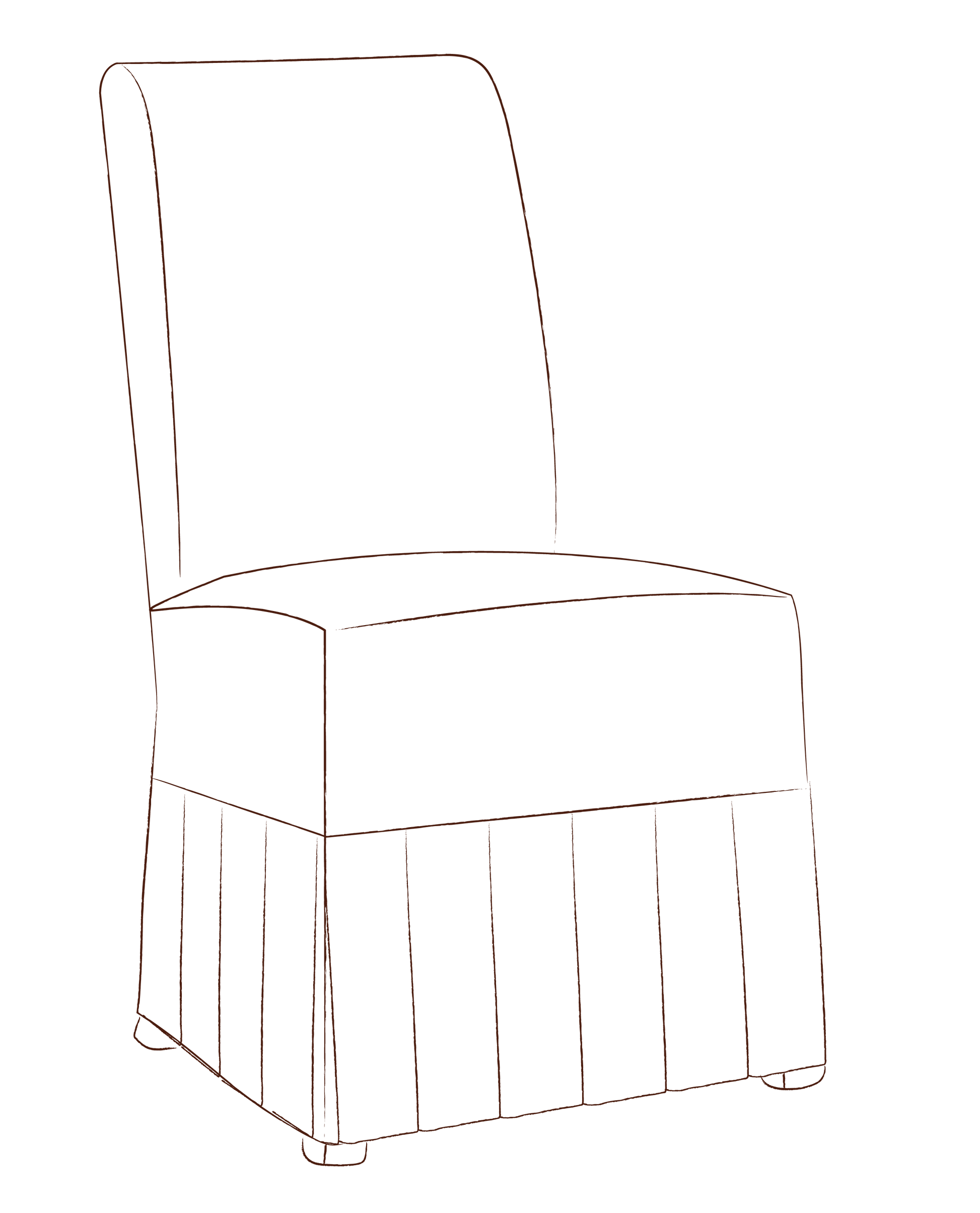 Our classic dining chair, available in any fabric with a box pleat full removable slipcover.